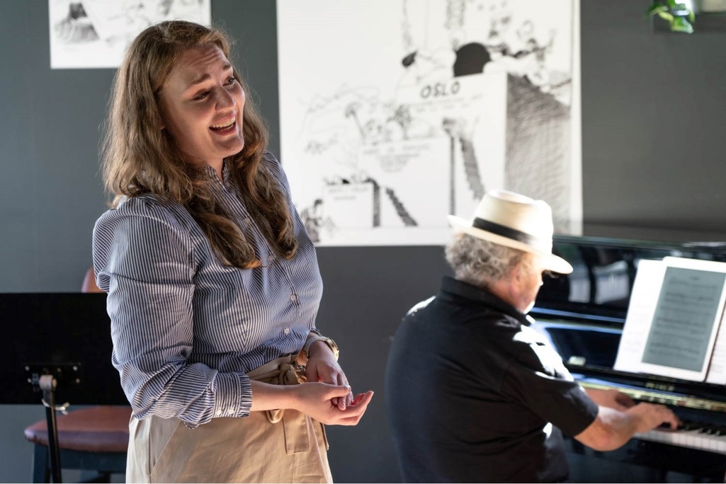 Nå kommer han sammen med Astrid Nordstad, en ung og foreløpig mer ukjent kunstner for de fleste. Hun kommer fra Trondheim og tok sin utdannelse ved Norges Musikkhøgskole, Operahøgskolen og Det Kongelige Operaakademi i København. Og i København debuterte hun i 2017 på Den Kongelige Opera, i La Traviata. Deretter har hun sunget i et utall andre oppsetninger i utlandet, men også flere ganger i Oslo. Hun har hatt flere store konsertoppdrag, nå sist i Oslo Kirkemusikkfestival, til strålende kritikk. Her er det bare å sette seg ned og nyte nydelig musikk på en tirsdag formiddag.